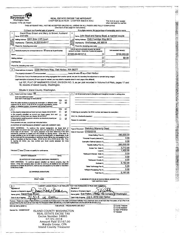 | Mailing Address: | CHRISTINE A KRUSEY 986 MICHAEL WAY CAMANO ISLAND, WA 98282 | % Ownership: | 100.0000000000% |