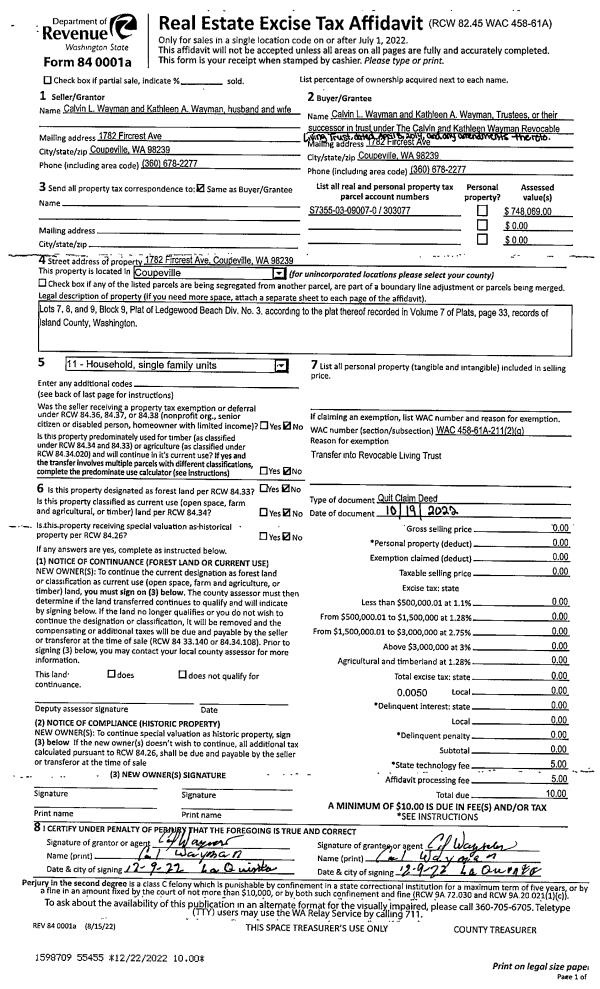 | Mailing Address: | 820 N OAK HARBOR ST TRLR 16 OAK HARBOR, WA 98277 | % Ownership: | 100.0000000000% |