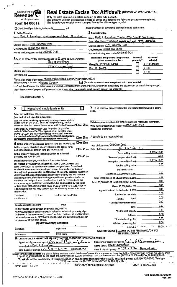 | Mailing Address: | 1389 OLDTIMER ST OAK HARBOR, WA 98277 | % Ownership: | 100.0000000000% |