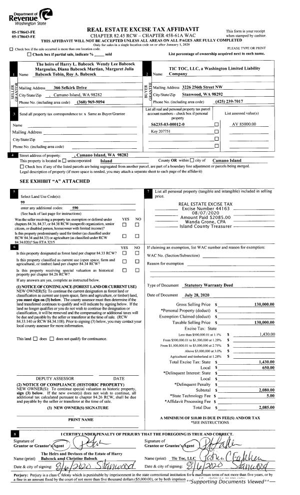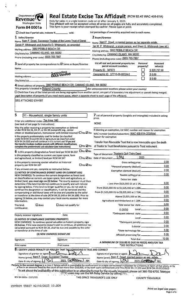 | Mailing Address: | 1324 CALVIN CT GREENBANK, WA 98253 | % Ownership: | 100.0000000000% |