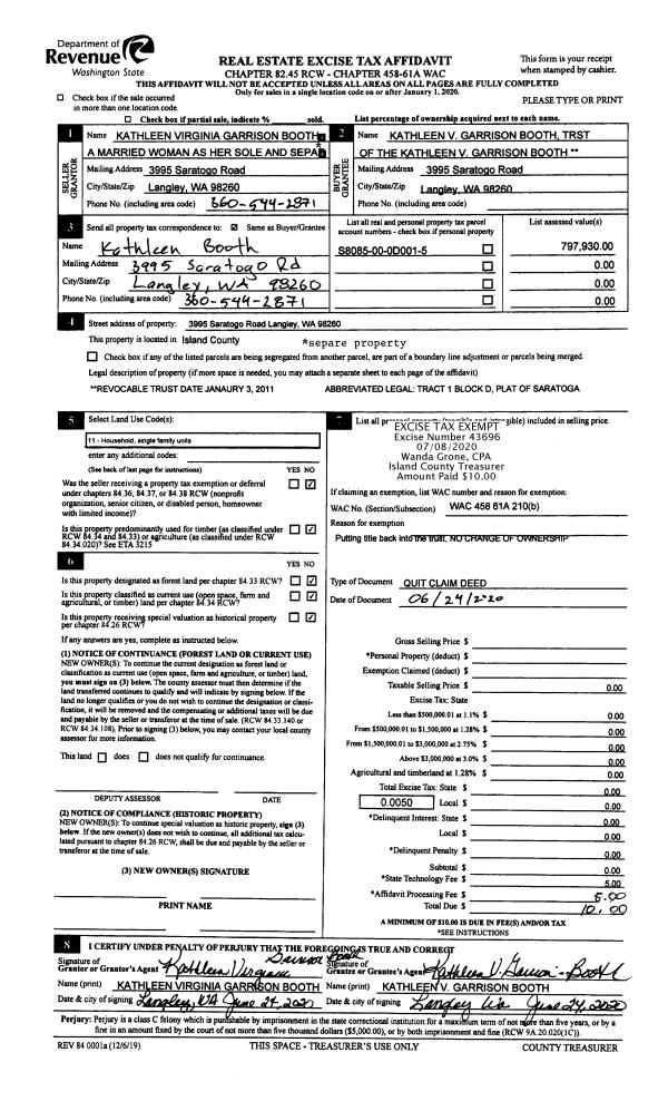 | Mailing Address: | KATHLEEN MEGAN COLLINS JTWROS 1843 NEWMAN RD FREELAND, WA 98249 | % Ownership: | 100.0000000000% |