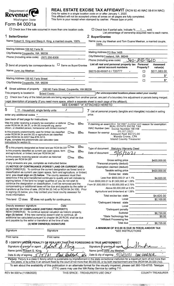 | 1 | 11/19/2020 | WD | Warranty Deed | SCHRECENGOST WHIDBEY LLLC | S&R PROPERTIES LLC | | | $1,400,000.00 | 46536 | 4507852 |