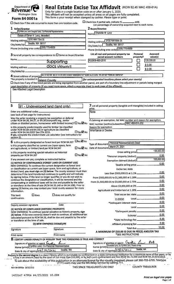 | Tax Area: | 712 - APPRAISER-S Whid Schl Dist, outside Langley, improved, greater than 1 acre | Land Use Code | 11 |
