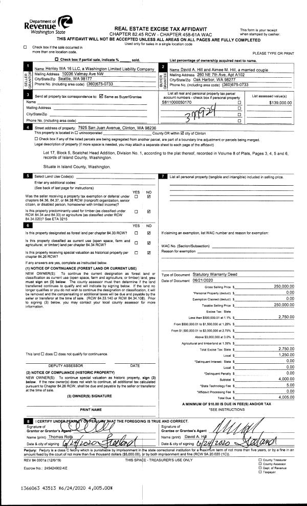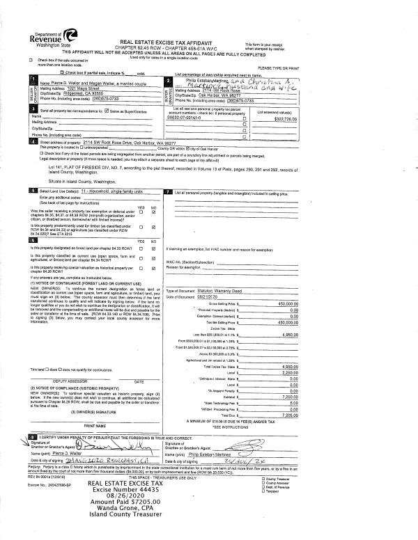 | Mailing Address: | 4988 JONES RD OAK HARBOR, WA 98277 | % Ownership: | 100.0000000000% |
