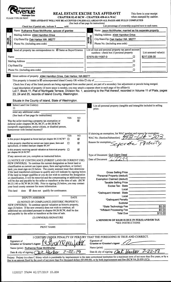 | 6 | 01/01/1900 | OTHER | Other - Misc. Documents | Unknown | ISLAND COUNTY TAX TITLE, | | | $0.00 | 0 | 0 |