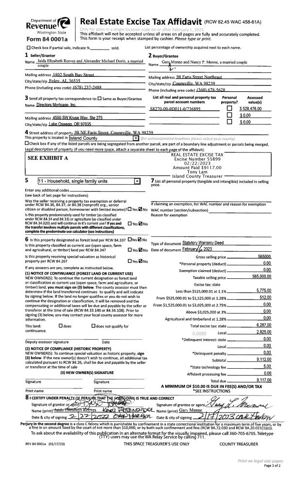 | Mailing Address: | DBA WAGON WHEEL MOBILE PARK PO BOX 1263 OAK HARBOR, WA 98277 | % Ownership: | 100.0000000000% |