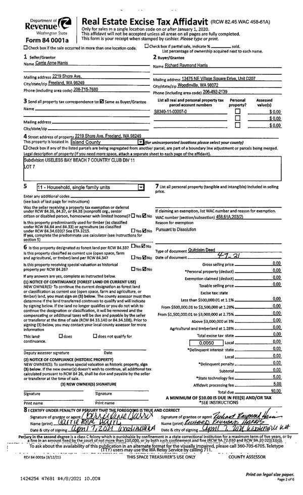 | Tax Area: | 719 - APPRAISER-S Whid Schl Dist, outside Langley, vacant & 50 acres or less | Land Use Code | 91 |