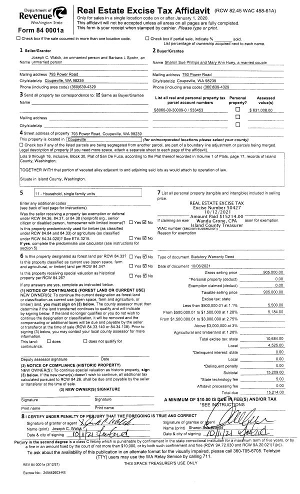 | SWHIDPRMT | P & R S Whidbey GEN | 0.2053334452 | $831,316 | $831,316 | $170.70 | | |