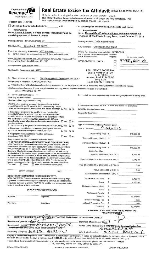 | Tax Area: | 719 - APPRAISER-S Whid Schl Dist, outside Langley, vacant & 50 acres or less | Land Use Code | 91 |