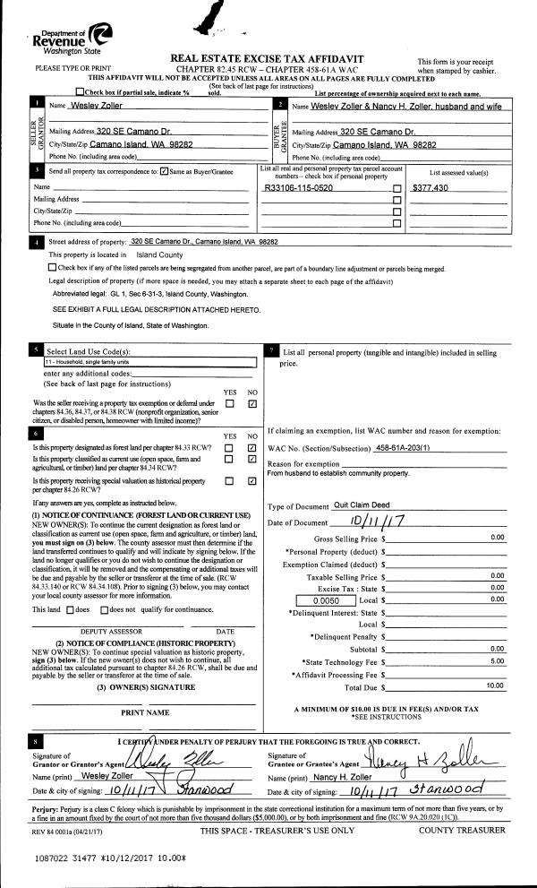 | 3 | 06/23/2017 | WD | Warranty Deed | RICHARDSON, ANNABELLE L | RICHARDSON, ANNABELLE L | | | $0.00 | 30353 | 4426965 |