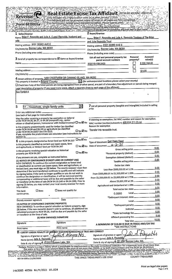 | 6 | 07/01/1991 | QCD | Quit Claim Deed | NEWMAN, HAROLD C | NEWMAN, GERALDINE D | | | $0.00 | 13328 | 91014200 |
