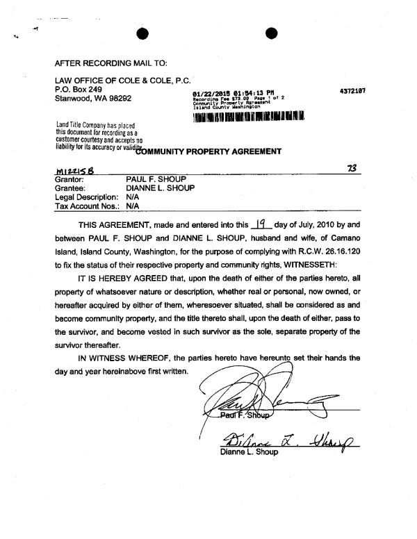 | Mailing Address: | DEBORAH R OLSON 1480 FAIRWAY DRIVE APT 3 CAMANO IS, WA 98282 | % Ownership: | 100.0000000000% |