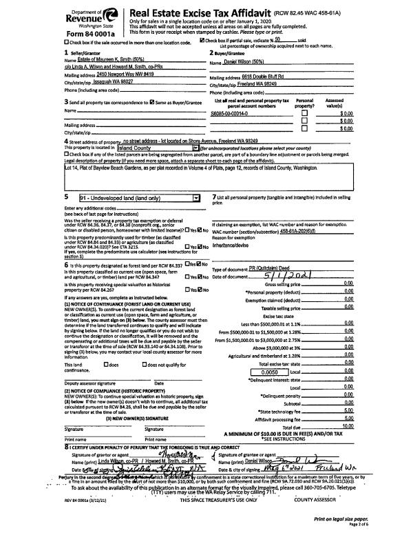 | Tax Area: | 719 - APPRAISER-S Whid Schl Dist, outside Langley, vacant & 50 acres or less | Land Use Code | 91 |