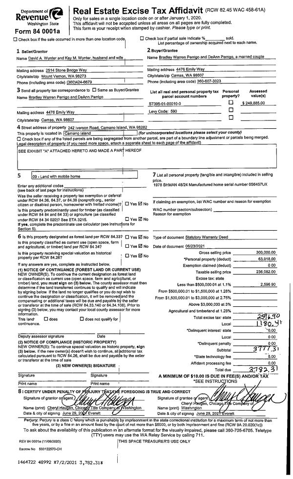 | Mailing Address: | 4367 PARADISE PLACE CLINTON, WA 98236-8427 | % Ownership: | 100.0000000000% |
