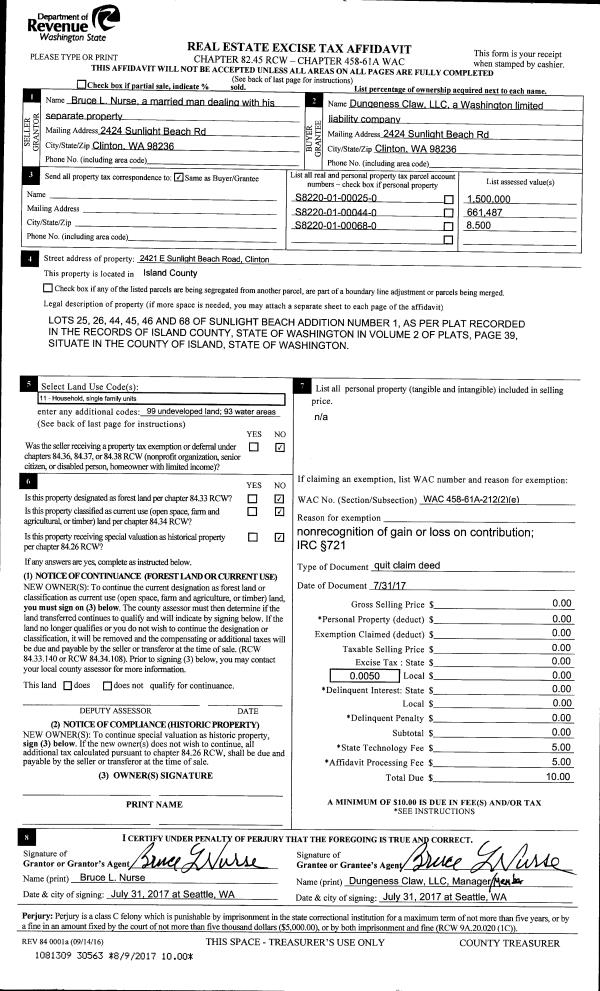 | Mailing Address: | 903 OCEAN BLUFF LN COUPEVILLE, WA 98239-9703 | % Ownership: | 100.0000000000% |