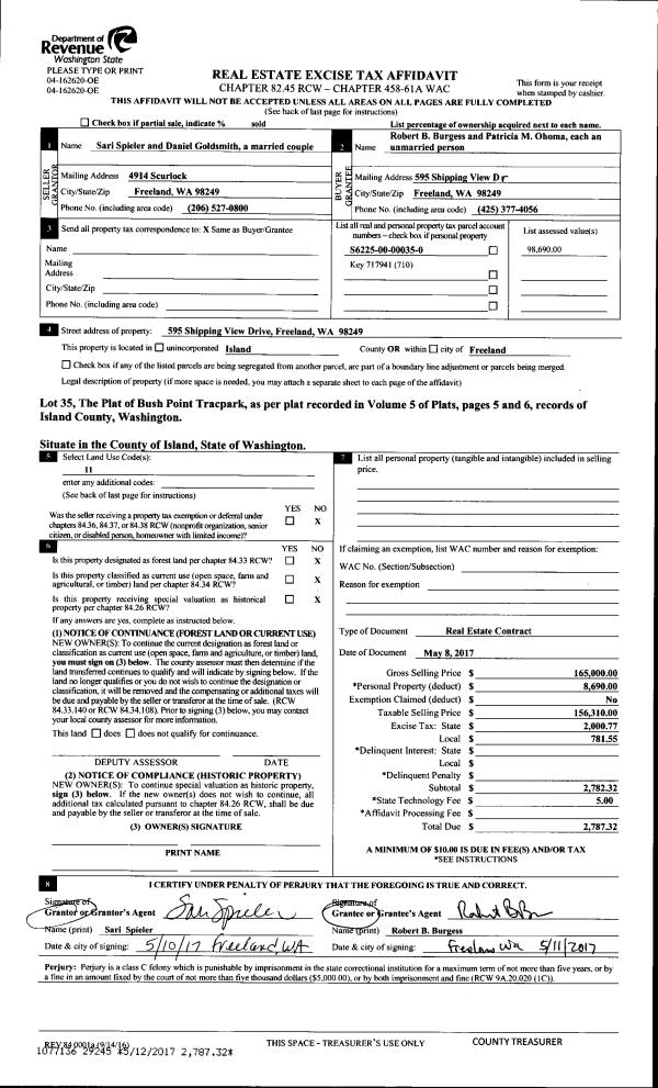 | Mailing Address: | 2549 LAKE FOREST DR OAK HARBOR, WA 98277 | % Ownership: | 100.0000000000% |