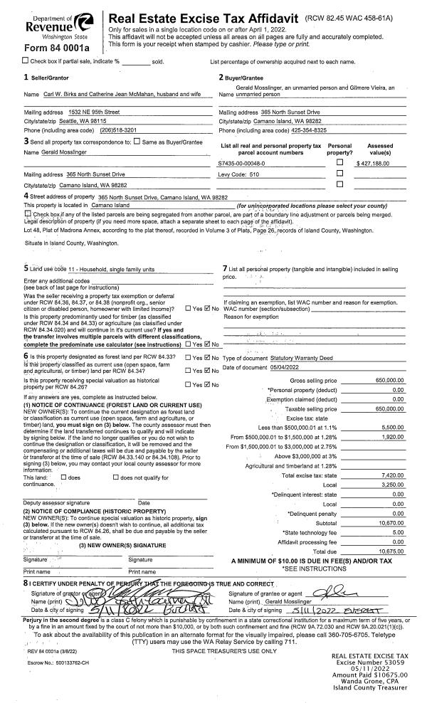 | 5 | 07/18/2003 | WD | Warranty Deed | KIM, SUN SOOK | KIM, SUN SOOK | | | $0.00 | 33288 | 4125145 |