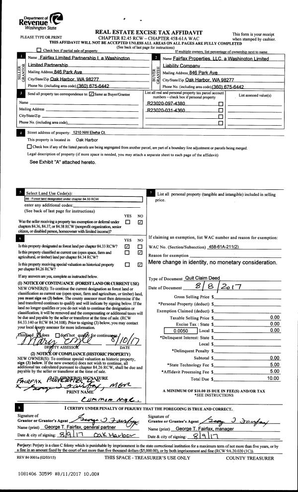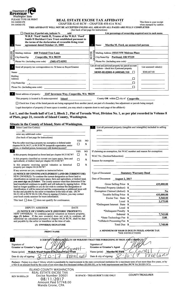 | Mailing Address: | JUNE K WOODINGTON 1965 HUMMINGBIRD LN CAMANO ISLAND, WA 98282 | % Ownership: | 100.0000000000% |