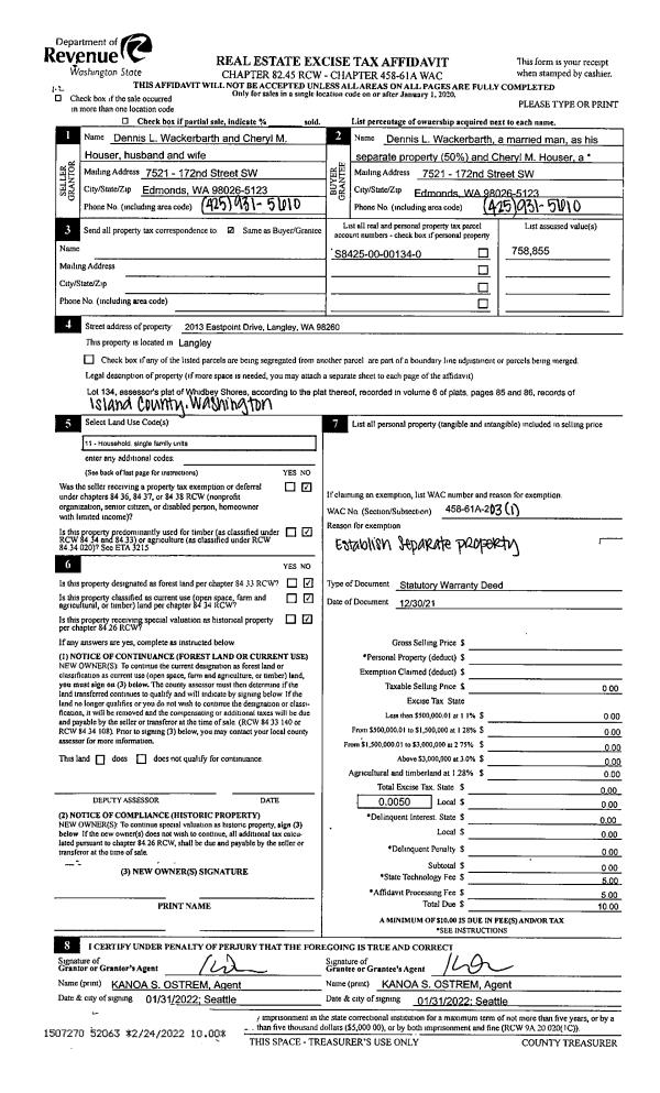 | 2 | 08/04/2005 | WD | Warranty Deed | GORDON, DONALD L | WISE, LORA B | | | $582,000.00 | 53973 | 4143981 |