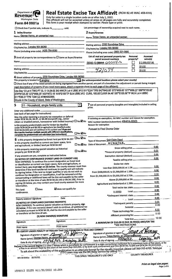 | 2 | 04/12/2022 | QCD | Quit Claim Deed | VAN WYE, JASON | VANWYE, JASON | | | $0.00 | 52833 | 4543973 |