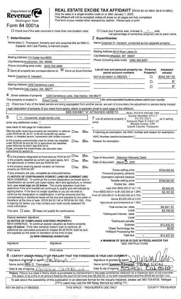 | Mailing Address: | SARAH WHEELER 712 GLEASON LN LANGLEY, WA 98260 | % Ownership: | 100.0000000000% |
