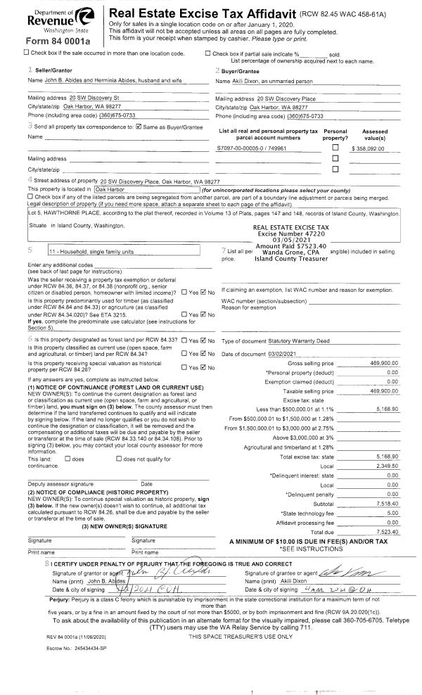 | Tax Area: | 700 - APPRAISER-S Whid Schl Dist, in town of Langley | Land Use Code | 11 |