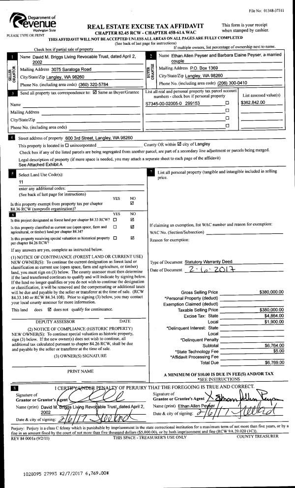 | Mailing Address: | TRACY L EBERSOLE 2106 FIRESIDE LN OAK HARBOR, WA 98277 | % Ownership: | 100.0000000000% |