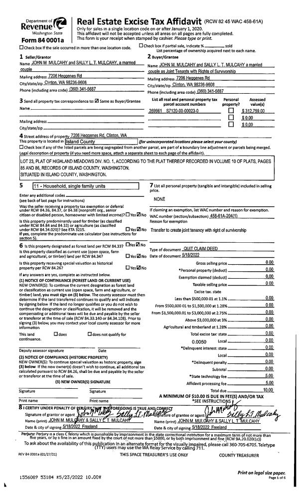 | Mailing Address: | MARILYN STOUT 2513 WELLS WAY CAMANO ISLAND, WA 98282-7590 | % Ownership: | 100.0000000000% |