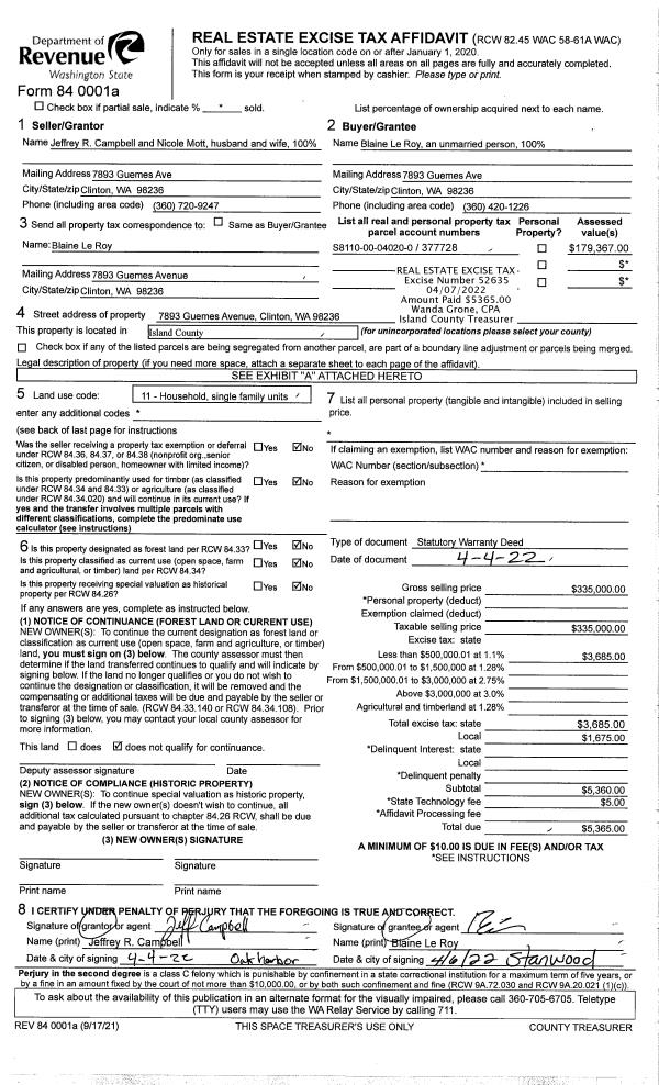 | 4 | 11/01/1994 | WD | Warranty Deed | ISLAND, TRUST | HOWELL, ALBERT G | | | $75,000.00 | 44651 | 94023795 |