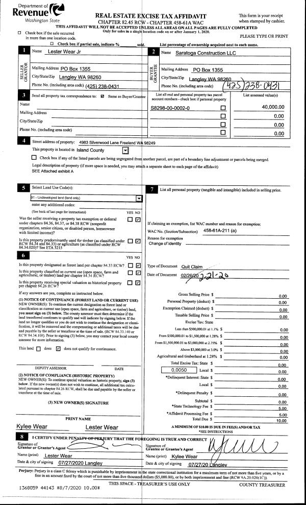| Mailing Address: | CHELSEA BRANT 1177 TARRAGON PL OAK HARBOR, WA 98277 | % Ownership: | 100.0000000000% |
