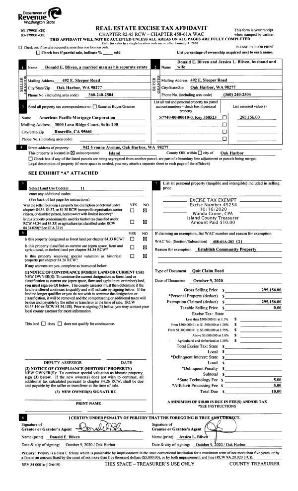 | Mailing Address: | OF JACOBSONS PARK 1428 OCEAN DR CAMANO ISLAND, WA 98282 | % Ownership: | 100.0000000000% |