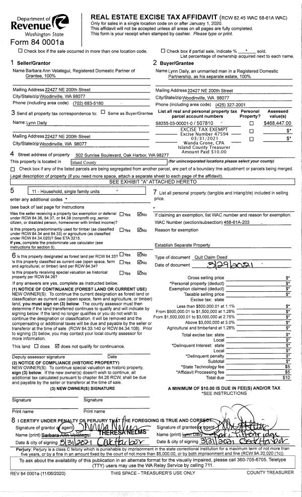 | Mailing Address: | HELEN KHALEF 7901 DECATUR AVE CLINTON, WA 98236-9238 | % Ownership: | 100.0000000000% |