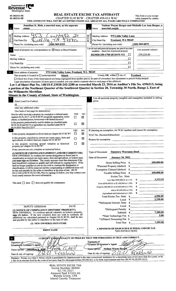 | Tax Area: | 719 - APPRAISER-S Whid Schl Dist, outside Langley, vacant & 50 acres or less | Land Use Code | 91 |
