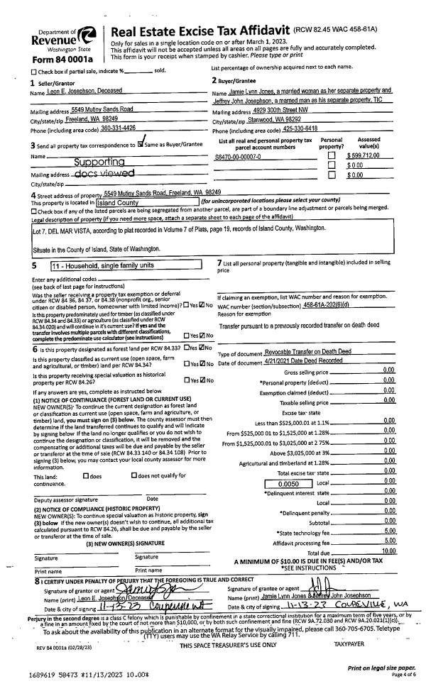 | Mailing Address: | 6583 STAATS DR CLINTON, WA 98236 | % Ownership: | 100.0000000000% |