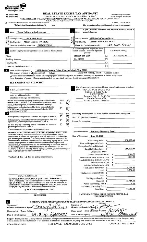 | Mailing Address: | 2715 STRAWBERRY POINT RD OAK HARBOR, WA 98277 | % Ownership: | 100.0000000000% |