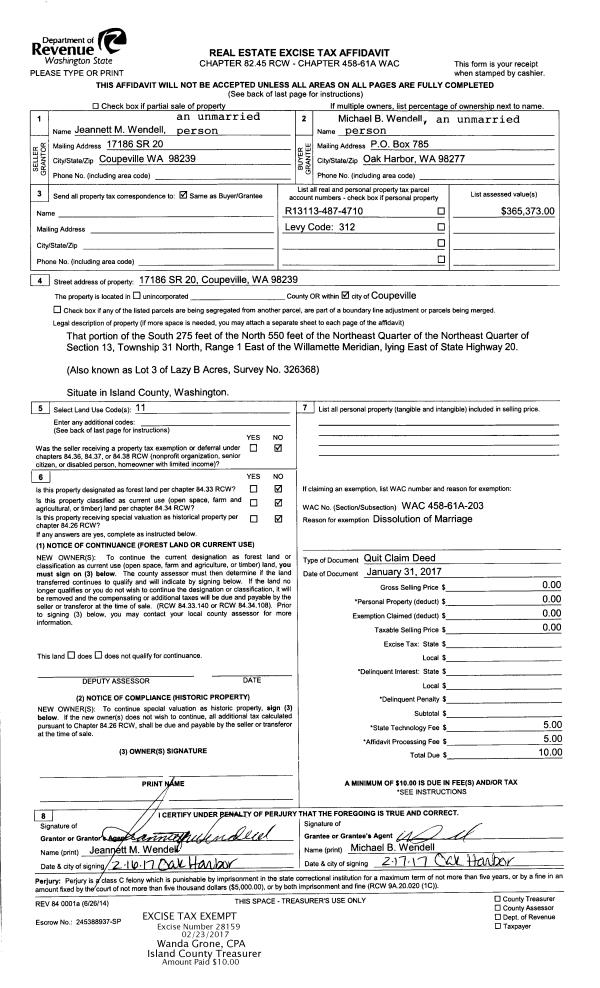| Mailing Address: | 7085 HUMPHREY RD CLINTON, WA 98236 | % Ownership: | 100.0000000000% |