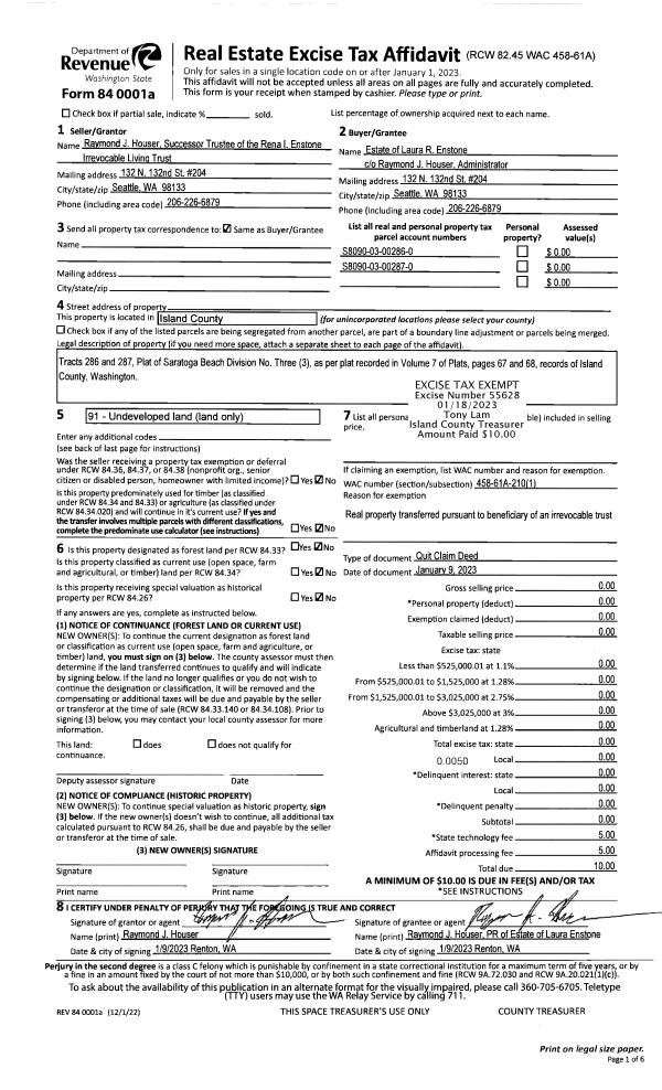 | Mailing Address: | SUSAN DELONG 954 WALKER HEIGHTS PL OAK HARBOR, WA 98277 | % Ownership: | 100.0000000000% |