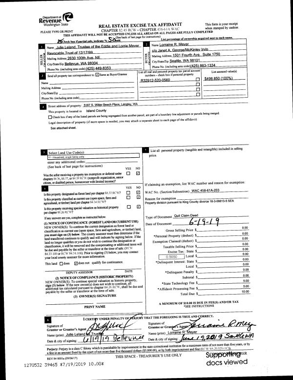 | 1 | 04/25/2019 | QCD | Quit Claim Deed | BACKMAN-YORTON, SUZANNE JEAN | BACK-YORTON, SUZANNE JEAN | | | $0.00 | 38226 | 4462084 |