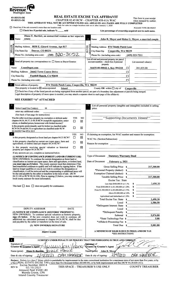 | Tax Area: | 719 - APPRAISER-S Whid Schl Dist, outside Langley, vacant & 50 acres or less | Land Use Code | 91 |