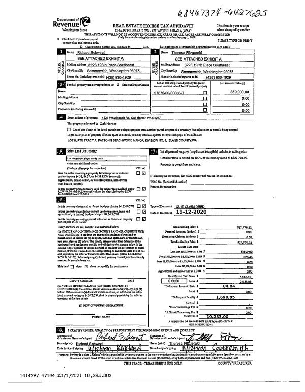 | Mailing Address: | RESA GABELEIN 5931 S MAXWELTON RD CLINTON, WA 98236 | % Ownership: | 100.0000000000% |