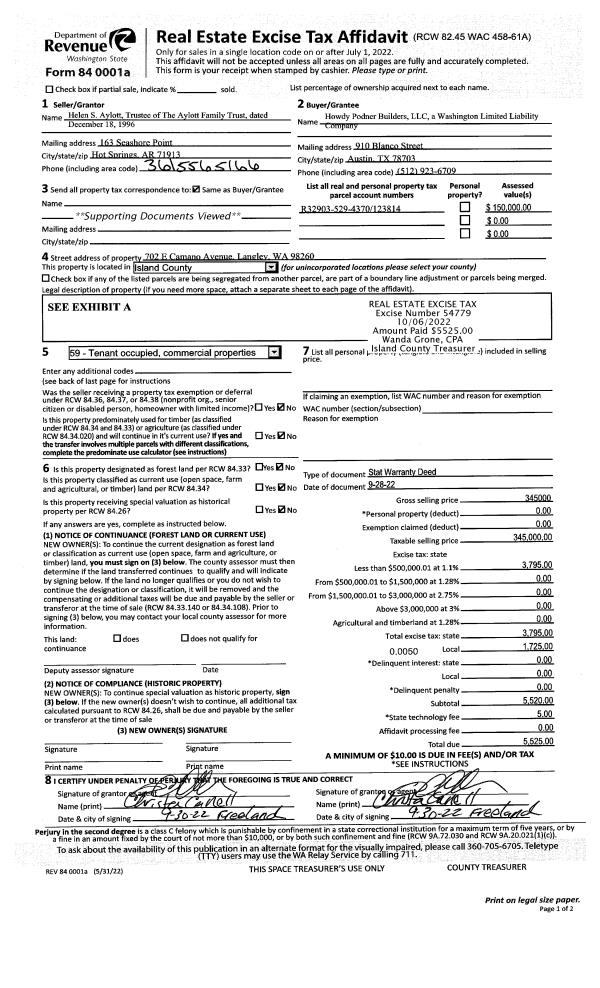 | Mailing Address: | PO BOX 152 LANGLEY, WA 98260 | % Ownership: | 100.0000000000% |
