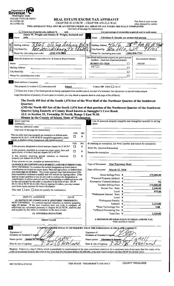 | Tax Area: | 719 - APPRAISER-S Whid Schl Dist, outside Langley, vacant & 50 acres or less | Land Use Code | 91 |