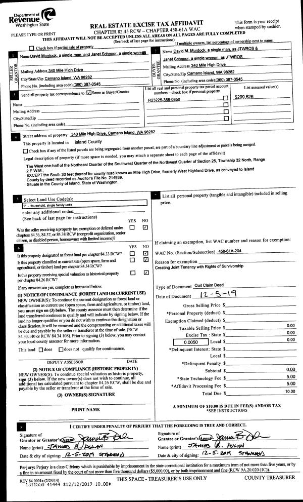 | 4 | 12/01/1993 | QCD | Quit Claim Deed | WELDEN, ELMER O | WELDEN, ELMER O | | | $0.00 | 35210 | 93027041 |
