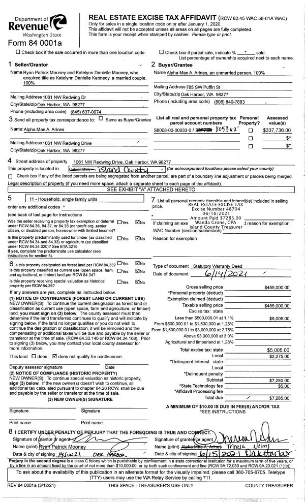 | Tax Area: | 712 - APPRAISER-S Whid Schl Dist, outside Langley, improved, greater than 1 acre | Land Use Code | 11 |