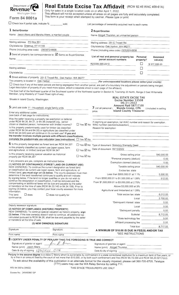 | Mailing Address: | KYMBERLY M ST. CLAIR 1696 BONNIE LN CAMANO ISLAND, WA 98282 | % Ownership: | 100.0000000000% |