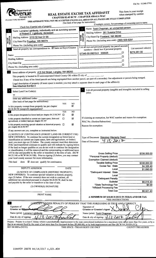 | Mailing Address: | KAIA A DEBOER 1051 JUNIPER BEACH RD CAMANO ISLAND, WA 98282-8851 | % Ownership: | 100.0000000000% |