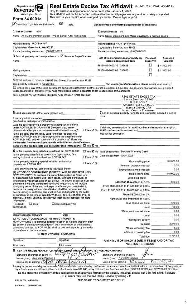 | Mailing Address: | BRANDI CORRAL 616 E SLEEPER RD OAK HARBOR, WA 98277 | % Ownership: | 100.0000000000% |