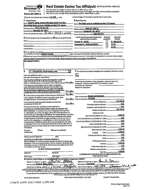 | Mailing Address: | DEBORAH DAVIDSON-LARSGAARD 7557 HAMILTON LN CLINTON, WA 98236 | % Ownership: | 100.0000000000% |