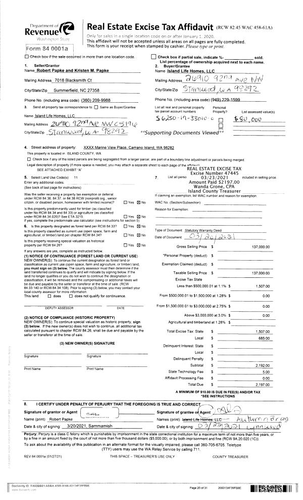 | 1 | 07/19/2012 | BARGSLD | Bargain And Sale Deed | DEUTSCHE BANK NATIONAL TRUST COMPANY | SEATTLE LAKE VIEW HOMES LLC | | | $224,000.00 | 8325 | 4319708 |