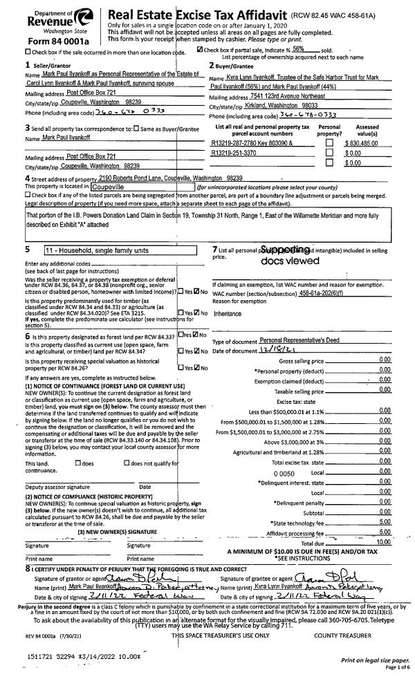 | Mailing Address: | CAROL J BYRUM TRUSTEE JUDITH LYNN BYRUM TRUSTEE 22815 155TH AVE SE SNOHOMISH, WA 98296 | % Ownership: | 100.0000000000% |